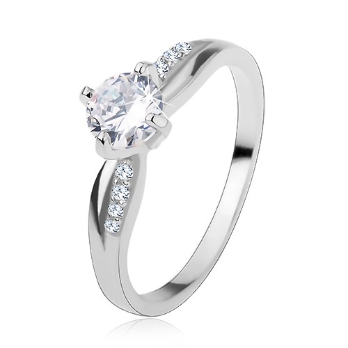 Popis produktu Zásnubní prsten, stříbro 925, hladká a zirkonová linie, blýskavý čirý zirkon - Velikost: 57