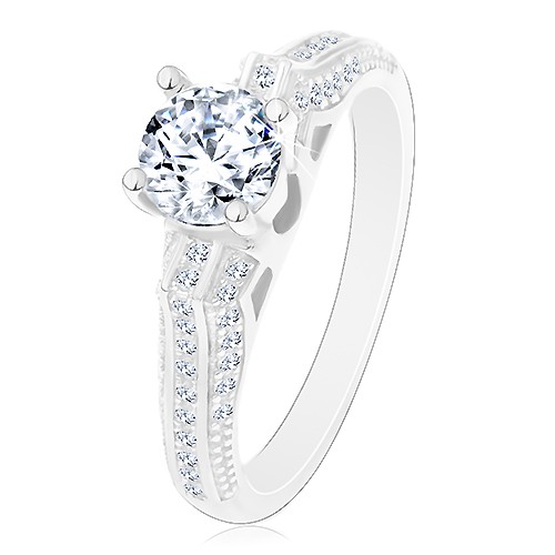 Popis produktu Zásnubní prsten, stříbro 925, třpytivá ramena s tenkými liniemi, čirý zirkon - Velikost: 53