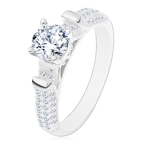Popis produktu Zásnubní prsten, stříbro 925, třpytivá ramena s výčnělky, čirý zirkon - Velikost: 50