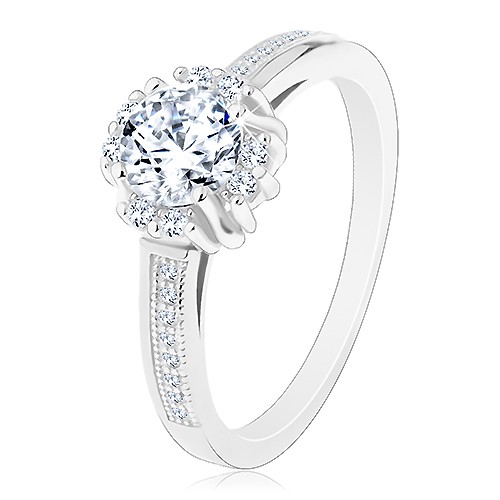 Popis produktu Zásnubní prsten - stříbro 925, zářivý čirý zirkon, dvojice drobných zirkonků - Velikost: 60