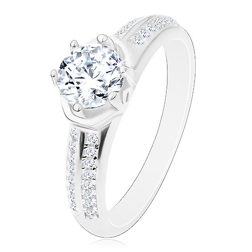 Popis produktu Zásnubní prsten - stříbro 925, zářivý kulatý zirkon, obloučky, blýskavá ramena - Velikost: 54