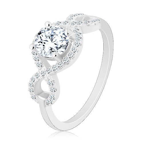 Popis produktu Zásnubní prsten, stříbro 925, zirkonové vlnky, kulatý broušený zirkon - Velikost: 50