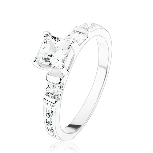 Popis produktu Zásnubní prsten ze stříbra 925, čtvercové čiré zirkonky, čirá zirkonová linie - Velikost: 54
