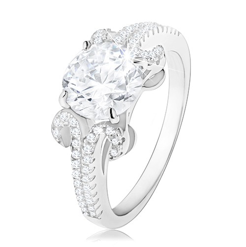 Popis produktu Zásnubní prsten ze stříbra 925, kulatý zirkon v čiré barvě, třpytivé pásky - Velikost: 53