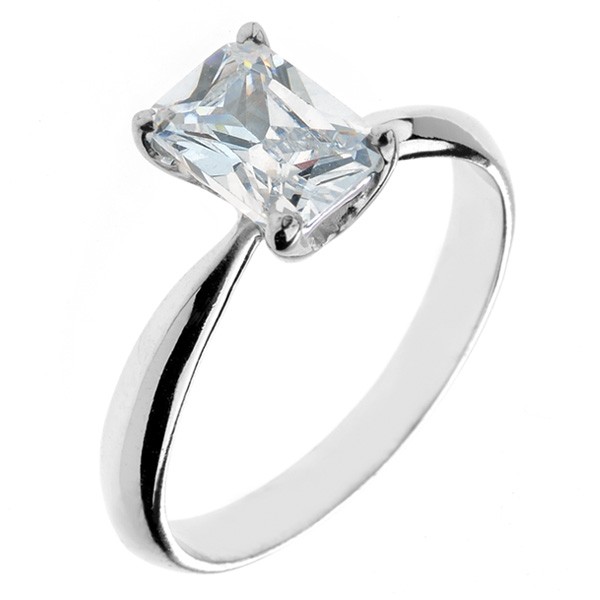 Zásnubní prsten ze stříbra 925 - mohutný obdélníkový zirkon - Velikost: 52
