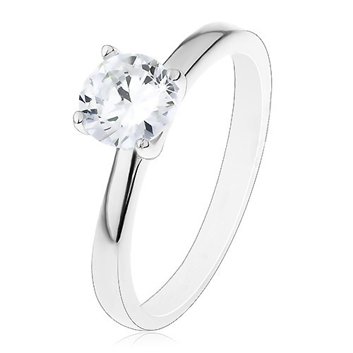 Zásnubní prsten ze stříbra 925 - vyvýšený kulatý zirkon čiré barvy - Velikost: 54