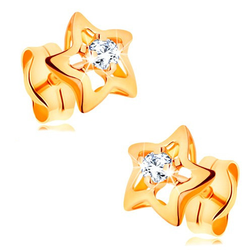 Popis produktu Zlaté 14K náušnice - blýskavé hvězdičky s čirým zirkonem uprostřed