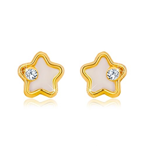 Popis produktu Zlaté náušnice 585 - hvězdička s bílou přírodní perletí a čirým zirkonem