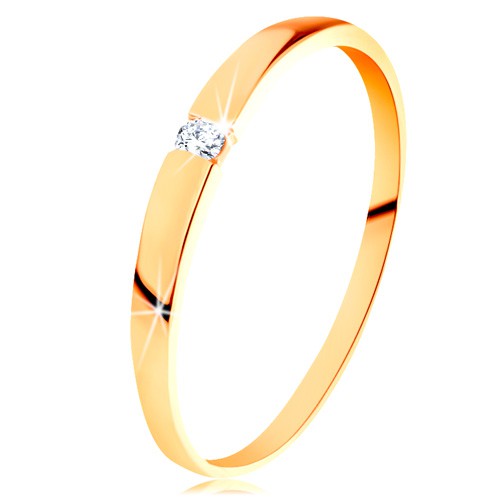 Popis produktu Zlatý prsten 585 - blýskavý diamant čiré barvy, hladká vypouklá ramena - Velikost: 50