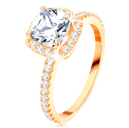 Popis produktu Zlatý prsten 585 - blýskavý kulatý zirkon v ozdobném kotlíku, třpytivé linie - Velikost: 54