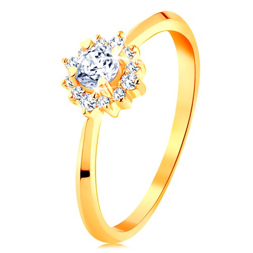 Kvalitní produkt Zlatý prsten 585 - blýskavý kvítek z čirých zirkonů, tenká lesklá ramena - Velikost: 54 od společnosti Šperky Eshop za přívětivou cenu 5 263 CZK Kč. Zobrazit více »