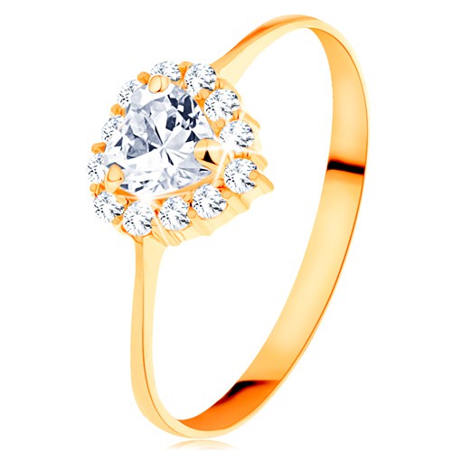 Popis produktu Zlatý prsten 585 - čiré zirkonové srdíčko s třpytivým okrajem - Velikost: 65