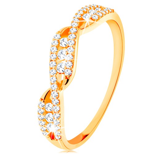 Trhem osvědčený produkt, Zlatý prsten 585 - propletená zvlněná ramena, kulaté čiré zirkony - Velikost: 56 od oblíbeného výrobce Šperky Eshop v akci za 6 669 CZK Kč. Zobrazit více »