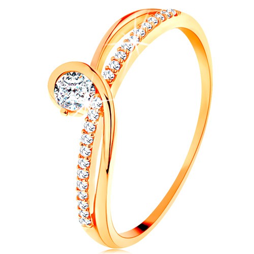 Popis produktu Zlatý prsten 585 s rozdělenými propletenými rameny, čirý zirkon - Velikost: 54