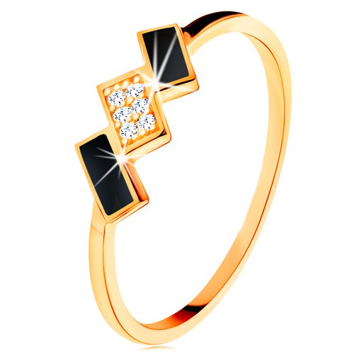 Zlatý prsten 585 - šikmé obdélníky zdobené černou glazurou a zirkony - Velikost: 56 od společnosti Šperky Eshop - toto zboží si můžete koupit s výjimečnou slevou za 3 896 CZK. U nás nakoupíte vždy kvalitní zboží za bombastické ceny. Jen nyní je POŠTOVNÉ ZDARMA, když si vyberete zboží nad Kč. Naše heslo: kvalita, výhodná cena, prozákaznický přístup.