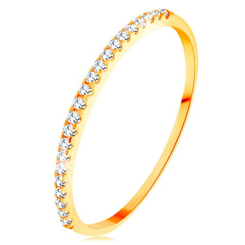 Popis produktu Zlatý prsten 585 - tenká lesklá ramena, blýskavá zirkonová linie čiré barvy - Velikost: 65