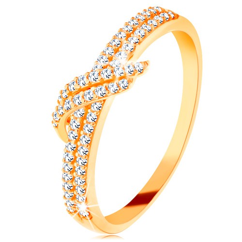 Popis produktu Zlatý prsten 585 - třpytivé linie čirých zirkonků, dvojitá vlnka - Velikost: 51