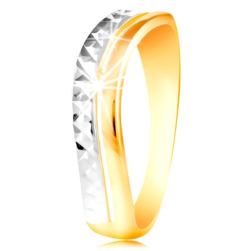 Zlatý prsten 585 - vlnka z bílého a žlutého zlata, blýskavý broušený povrch - Velikost: 55