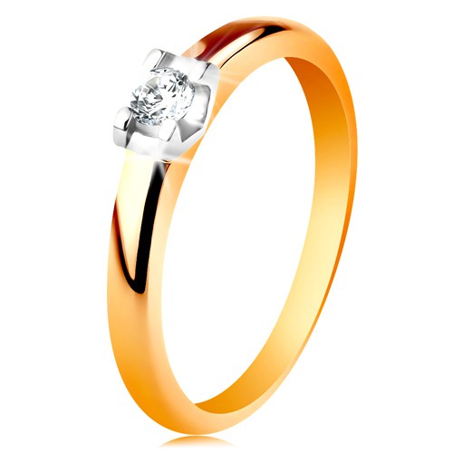 Popis produktu Zlatý prsten 585 - zaoblená ramena, kulatý čirý zirkon v kotlíku z bílého zlata - Velikost: 57