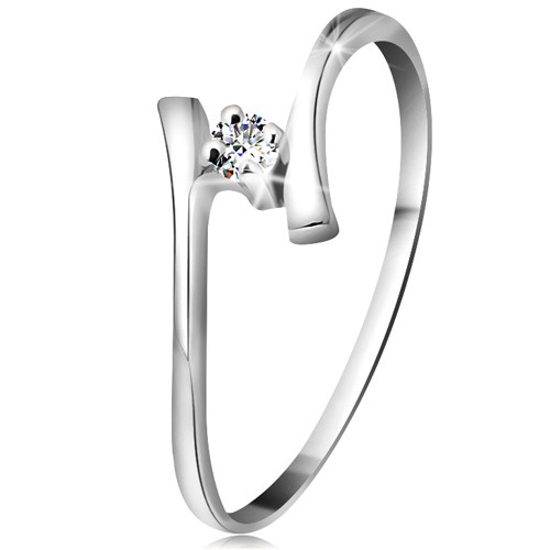 Popis produktu Zlatý prsten 585 - zářivý čirý briliant, tenká zahnutá ramena, bílé zlato - Velikost: 50