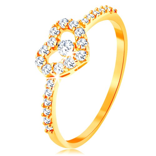 Popis produktu Zlatý prsten 585 - zirkonová ramena, blýskavý čirý obrys srdce se zirkonem - Velikost: 58